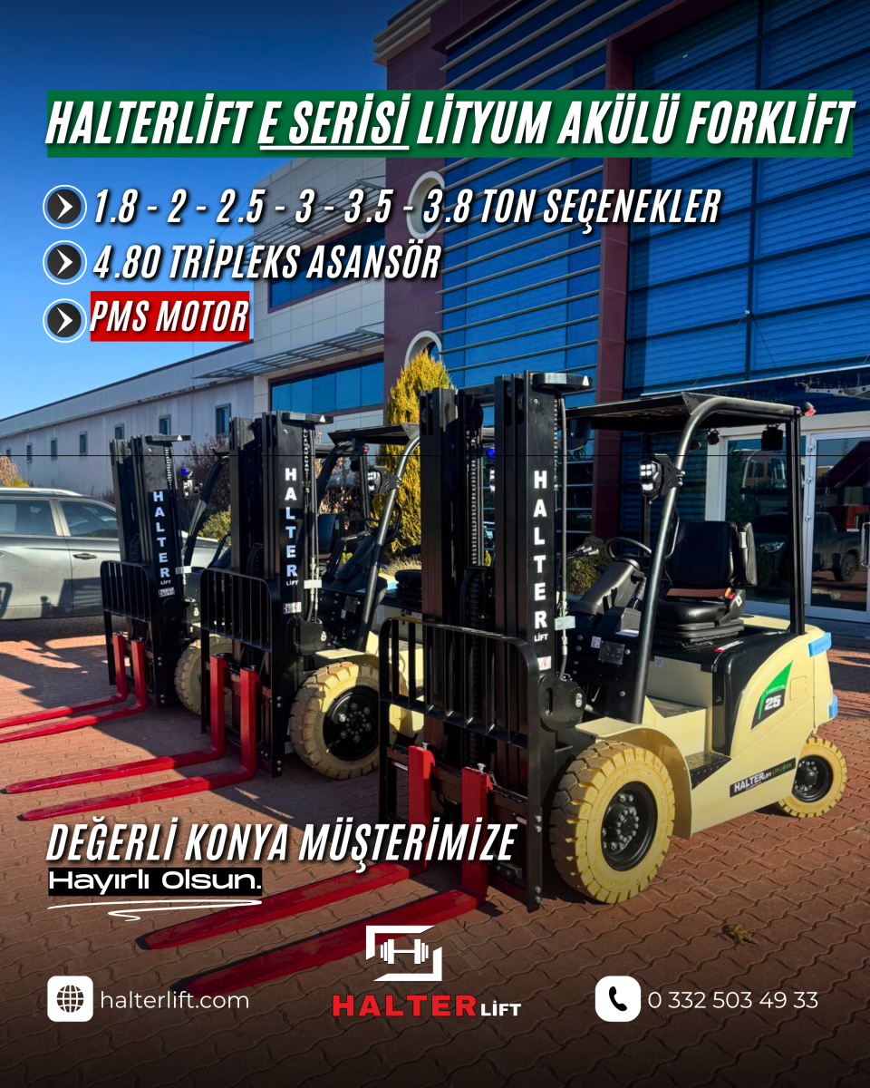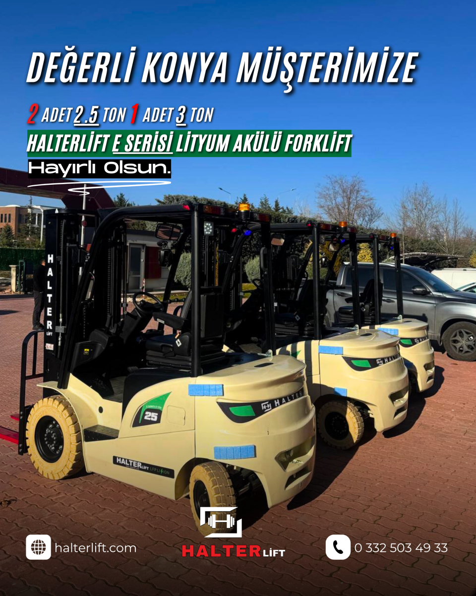 Değerli Konya müşterimize 3 adet Halterlift E Serisi lityum akülü forklift hayırlı olsun.