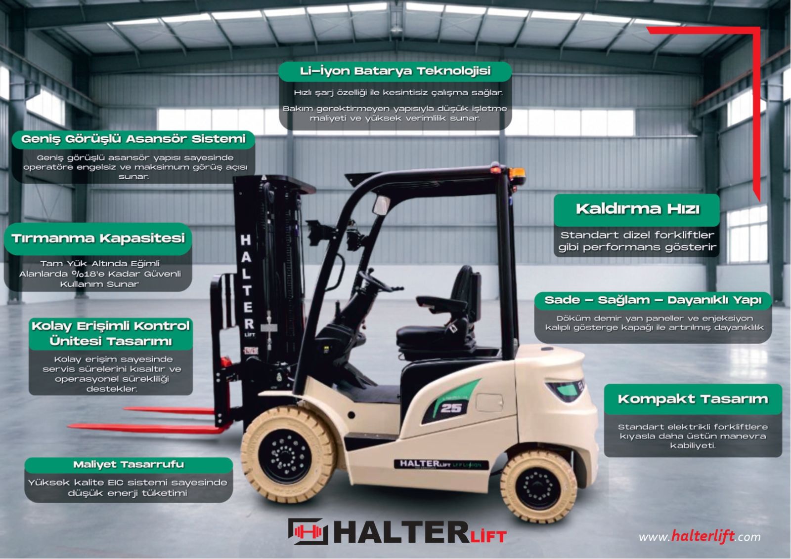HALTERLİFT E SERİSİ LİTYUM AKÜLÜ FORKLİFT